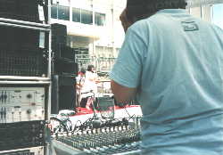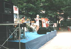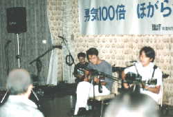 ゆず系LiveもOKです。大音量は必要ない、正直言ってお金がない(!)という人にお勧めです。レンタルプライスリストのイベント用200Wセット(30,000円)です。写真左上の小型スピーカー二本だけですが、それなりに楽しいLiveが演れます。 |